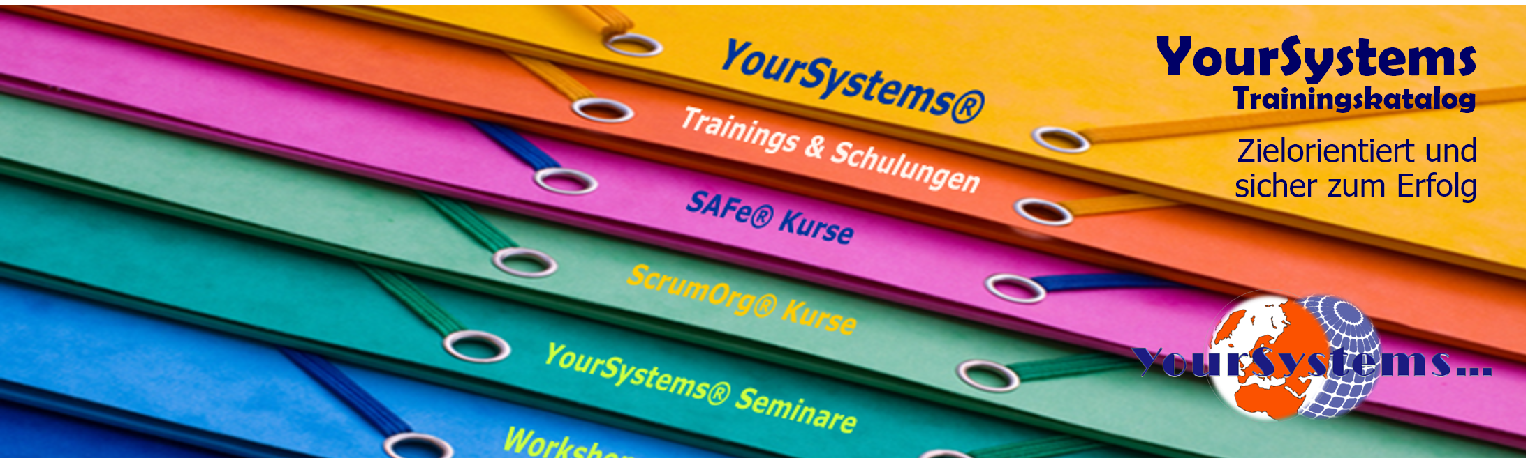 Unser Katalog umfasst Trainingsangebote, der YourSystems-Trainingsreihe mit Kursen und Seminaren die aus unseren langjährigen Praxiserfahrungen und Knowhow erstellt sind. Der Katalog erhält auch Kurse der Scrum.Org und SAFe.