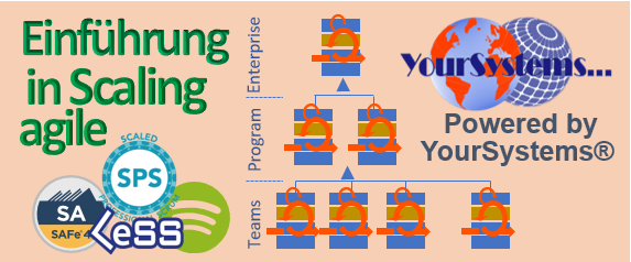 Wir bieten von YourSystems® gefertigten Kurse und Siminare an sowie die Schlungen im Rahmen der SAFe® Implementierungs Roadmap oder die Grunkurse von Scrum.Org®.