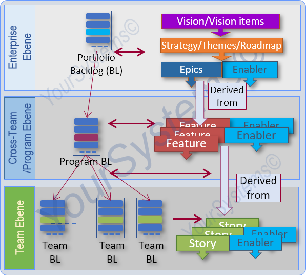 auf allen drei Skalierungsebenen, auf Enterprise-, Program-/Cross-Team- und Team-Ebene.